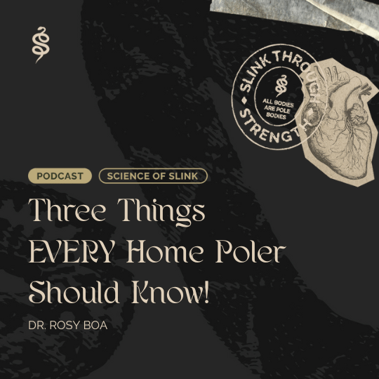I’m the host of the podcast Science of Slink. I combine my Ph.D. research and love of pole to bring you pole-related research and evidence-based insights into your earbuds.